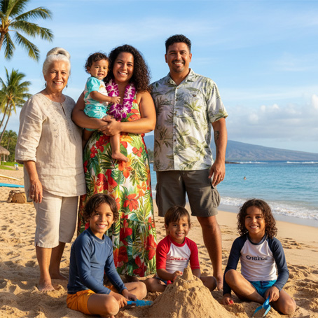 Robert, Hokulani, Keone, Makana, Kailani, Ikaika, and Tutu Melanie